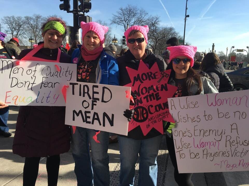 Niece Miranda knitted us pink hats for a Women’s March in Chicago.