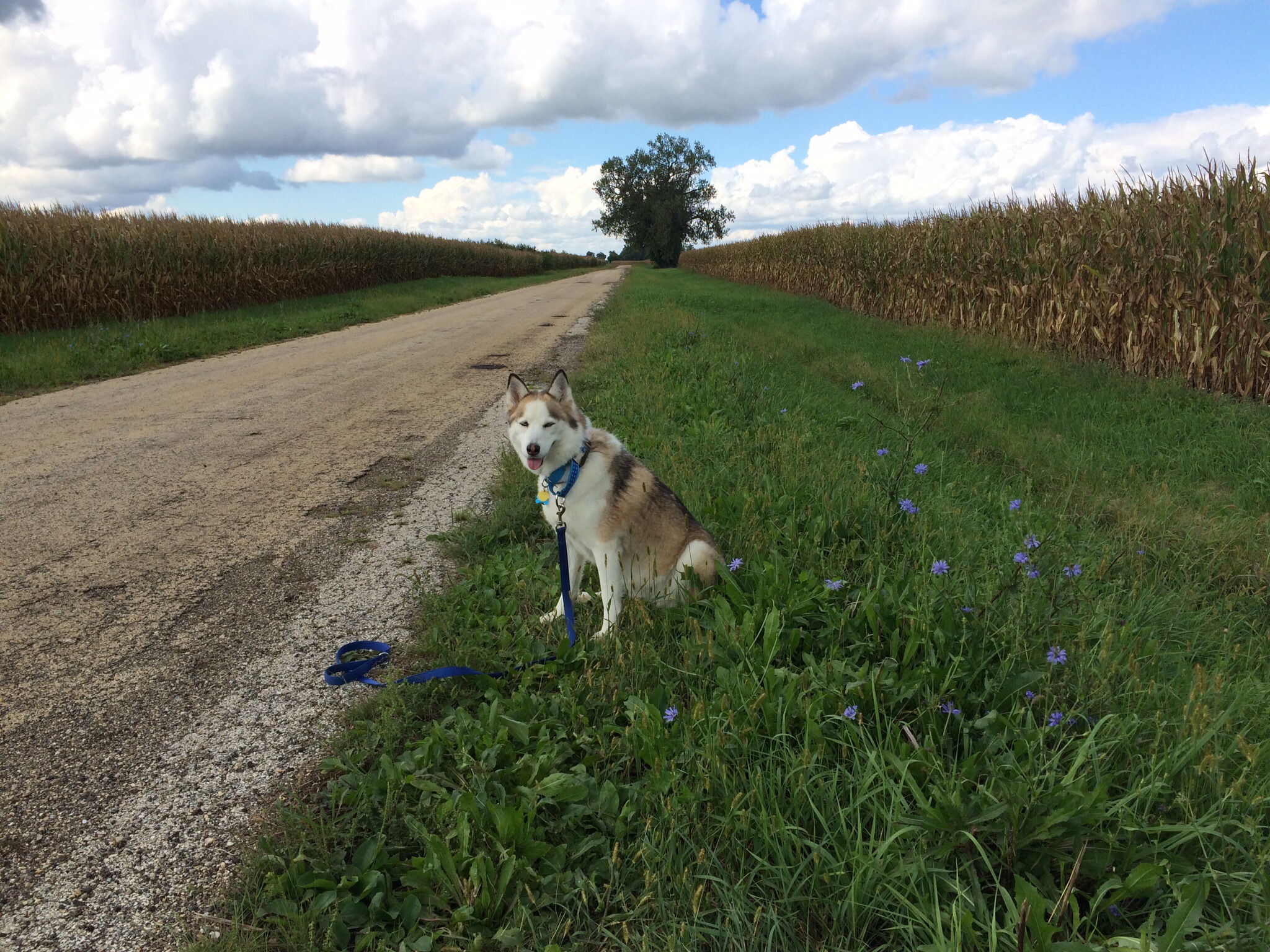 The country roads near the farm often present the drama of expanse and almost hidden surprises. How far can the eye see out on that horizon? How small do the trees appear in the distance, that seem so large up close? The vast spaciousness lies within, too. It might be easier to feel it when standing under dramatic skies. A friend recently told me she thinks I never stop. “Stopping” is for every morning and every moment of the day when Remembrance occurs – remembrance of Presence, of inner spaciousness, of Service to others, of connectedness. Pause. Witness your self. Notice beauty in the little things. Remember. Write. Nature helps. Like how the roadside flowers harmonize with Sage’s blue.